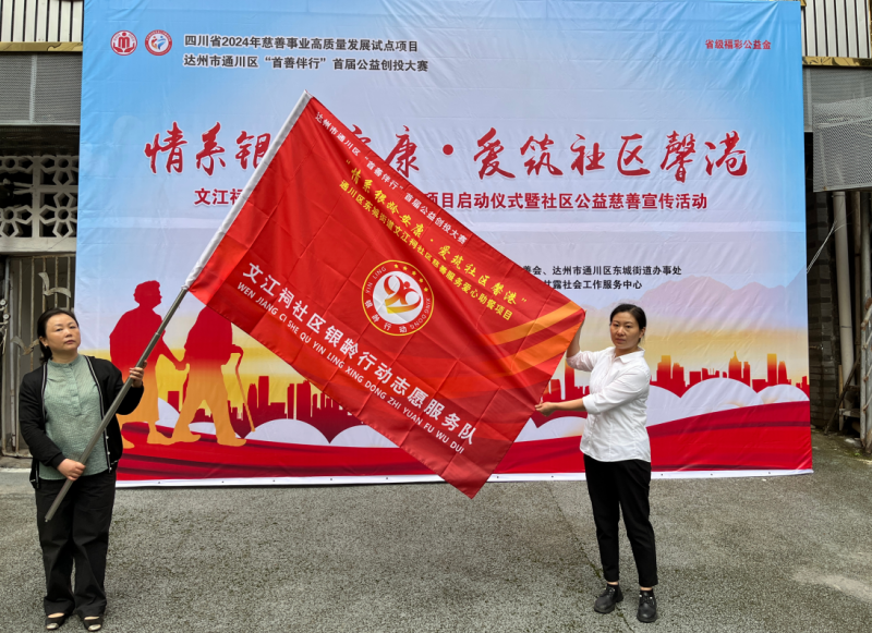 文江祠社区书记罗代芳向社区银铃志愿服务队进行了授旗,并表示:多年来,我们在社区慈善服务中积累了不少经验,也深知特殊群体的需求,此事项目的启动实施并成立了社区银铃志愿服务队,更是新的机遇与挑战。我们将以此次项目为契机,凝聚各方力量,让社区慈善服务更上一层楼,让每一位居民都能在社区中感受到家的温暖。