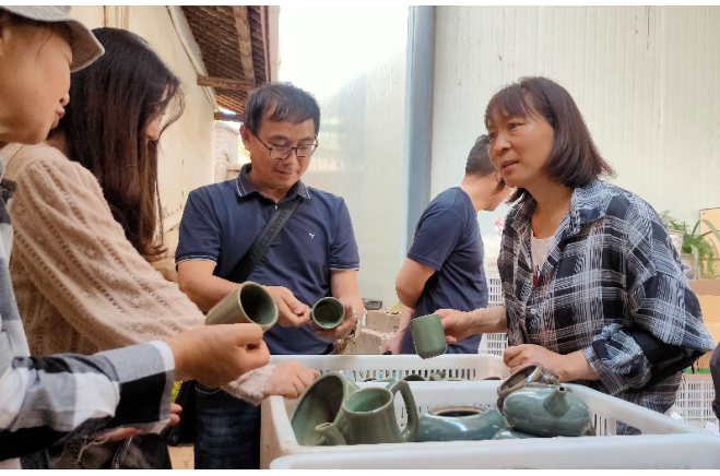 通过相关人员介绍和现场参观,大家详细记录了铜火锅、老绿陶、石榴酒的制作流程及当地特色产业的发展情况;倾听了下碾坊悠久的历史故事,就如何紧抓乡村振兴机遇打造乡村旅游景点,带领群众大力发展旅游业,让鹿厂镇变得更加美丽富饶进行了深入交流。