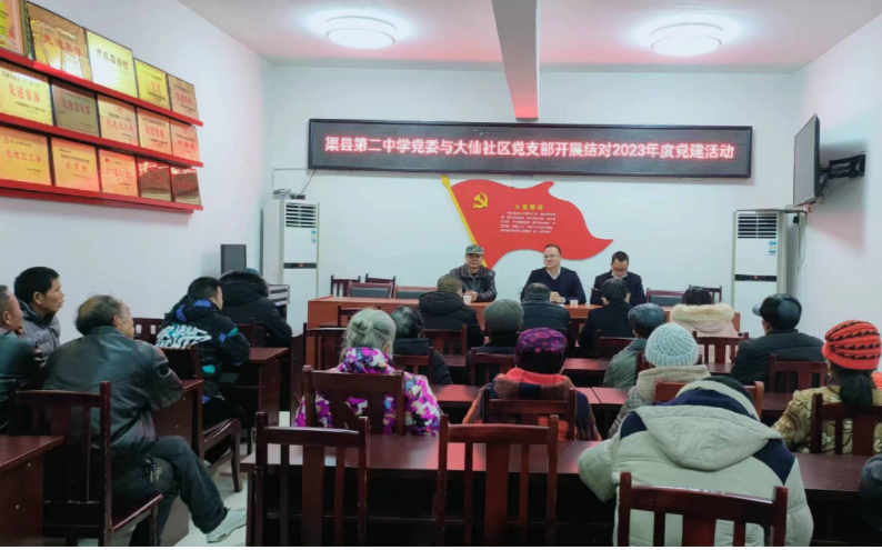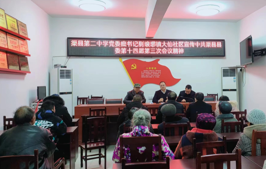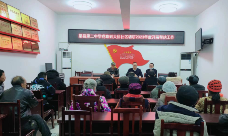 调研活动中,渠县第二中学党委还与当地党支部开展了结对共建活动,与村社干部交换了组织建设、乡振兴工作意见;糜高峰为村社干部和村民代表上了一堂党课,宣讲了中共渠县第十四届代表大会第三次会议精神。