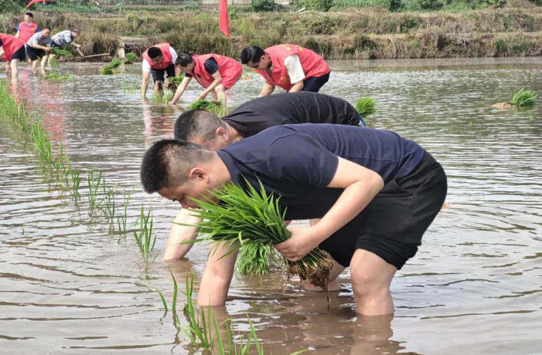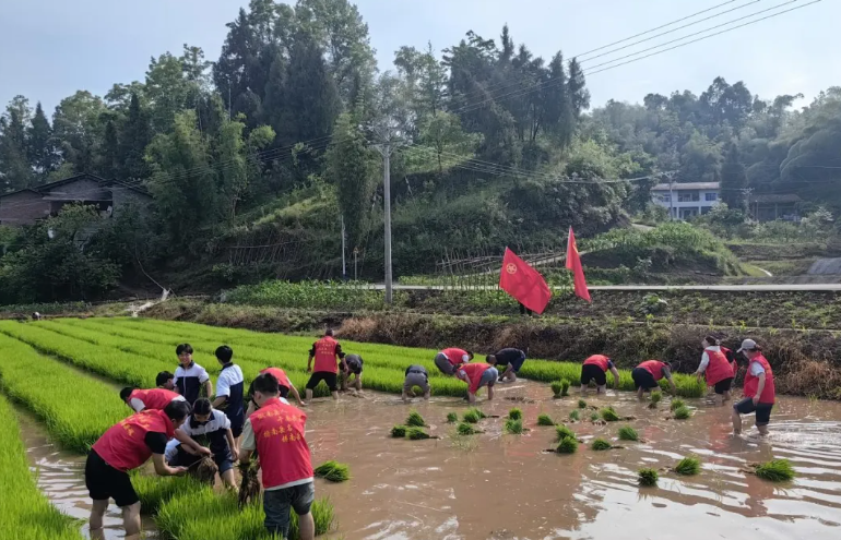 立夏刚至,农田处处染新绿,水稻插秧正当时。近日,达川区南岳镇充分发挥基层党组织战斗堡垒及党建带团建作用,组织动员40余名党员干部、团员青年组成联合志愿服务队,深入到田间地头,助力劳动力不足的农户开展水稻种植。鲜亮热情的“红色”与生机勃发的“绿色”交织,一幅幅农耕备耕图徐徐展开。 移栽秧苗是插秧前的必要步骤,南岳镇农业综合服务中心技术人员仔细为大家讲解了扯秧、捆秧、抛秧技巧,同步介绍了相关农业知识,助力志愿服务队员快速掌握种植方法。 (南岳镇春耕助农志愿服务队在农户承包的水田里移栽水稻) 南岳镇九元村位于达川区粮油现代农业园区核心区域,在农户承包的水田里,大家撸起袖子裤管,踏进泥泞,一字排开,低着头、弓着腰,跟随经验丰富的种田“老把式”开始插秧。抛秧分苗、搭线入土,大家在稻田里忙得热火朝天、不亦乐乎,经过三个多小时的奋战,一排排绿油油的秧苗很快在水田里铺展开来,在春日的阳光下焕发出勃勃生机。 (南岳镇春耕助农志愿服务队在农户承包的水田里进行水稻栽种) “作为团员,能参加这样的助力春耕生产活动很有意义,第一次近距离感受农业生产耕作不易,不仅增长了自己的见识,也更加明确了自己今后的努力方向和建设家乡的决心。”参加活动的学生这样说道。 (南岳镇团员青年帮助农户栽种水稻) “脚上沾有泥土,心中沉淀真情。这次活动,不仅让我们干农事、知农时、惜粮食,也让我们体会到了劳动者的艰辛。在今后的工作中,我要多为群众办实事、好事。”党员干部们纷纷表示,在今后的工作中要不断增强服务意识、提升服务水平,切实发挥党员先锋模范带头作用,立足群众实际需求,当好农忙时节“服务员”,把志愿服务送到种植户“心坎里”。 (南岳镇党员干部帮助农户栽种水稻) 下一步,达川区南岳镇将持续发挥好党建引领作用,深化党建带团建工作机制,聚焦乡村振兴各个领域,积极组织辖区党团青年志愿者开展各项服务活动,最大限度地调动党团青年的积极性和创造性,着力培育青年力量,助力乡村振兴。