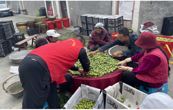 (龙坝乡党员干部帮助果农完成大小果分拣)