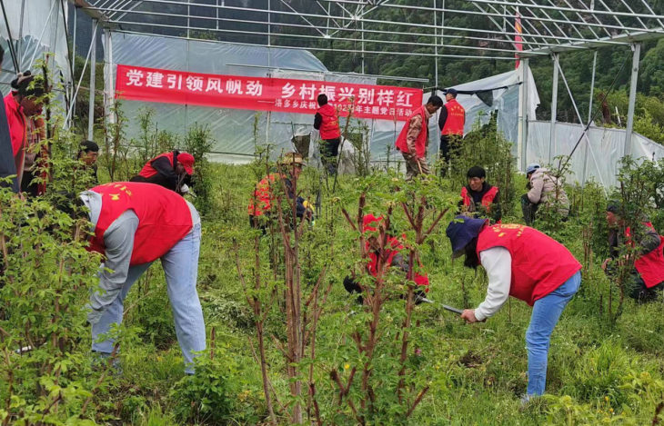 (洛多乡党员干部联合嘎茸村党支部在嘎茸村红毛五加基地义务除草)