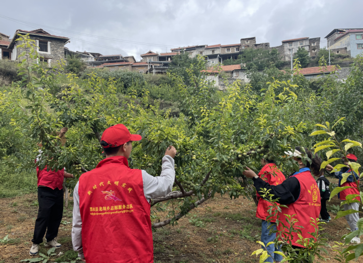 (龙坝乡党员干部到田间地头帮助果农采摘李子)